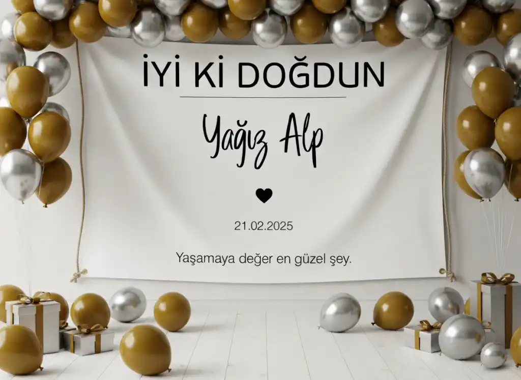 Doğum Günü Arka Fonu Tasarımı – 150x200 cm Branda Baskı ile Kişiye Özel Parti Dekoru